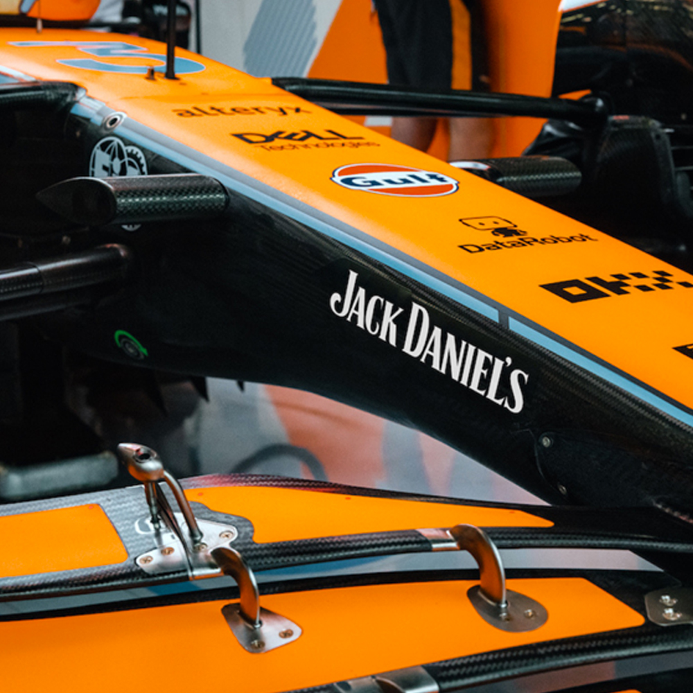 Jack Daniel’s Tennessee Whiskey e la bottiglia McLaren Racing in edizione limitata celebrano la loro partnership, con la colorazione papaya di McLaren e un’etichetta e un packaging personalizzati in onore di Jack Daniel e Bruce McLaren