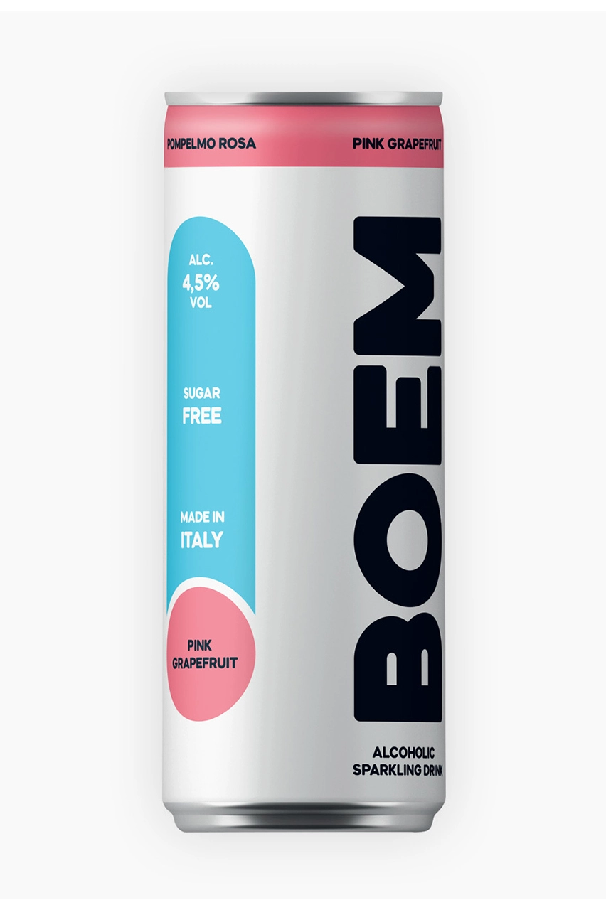 BOEM Hard Seltzer Pink Grapefruit Lattina 25cl si presenta come una bevanda leggera e rinfrescante in ben 3 declinazioni, un basso tenore alcolico (4,5%), solo 91 kcal e totalmente sugar free, vegana e gluten free.