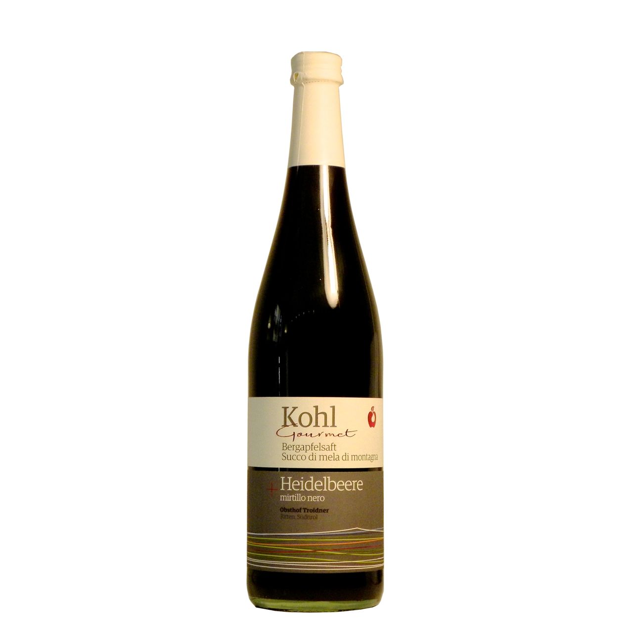 Nel succo di mela di montagna e mirtillo Kohl le note forti del mirtillo e la dolcezza della mela riempiono la bocca in modo deciso.