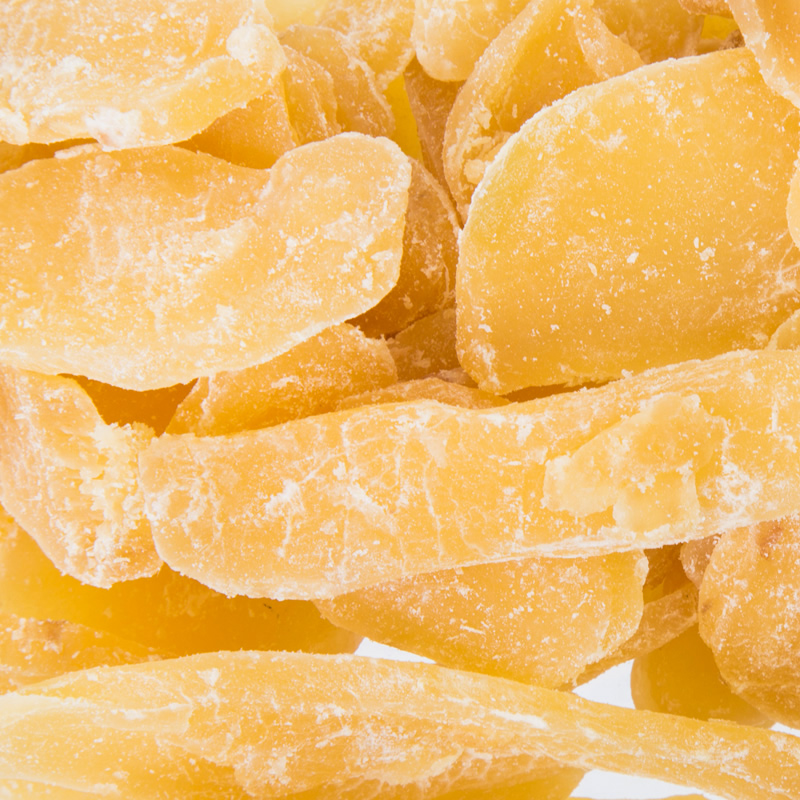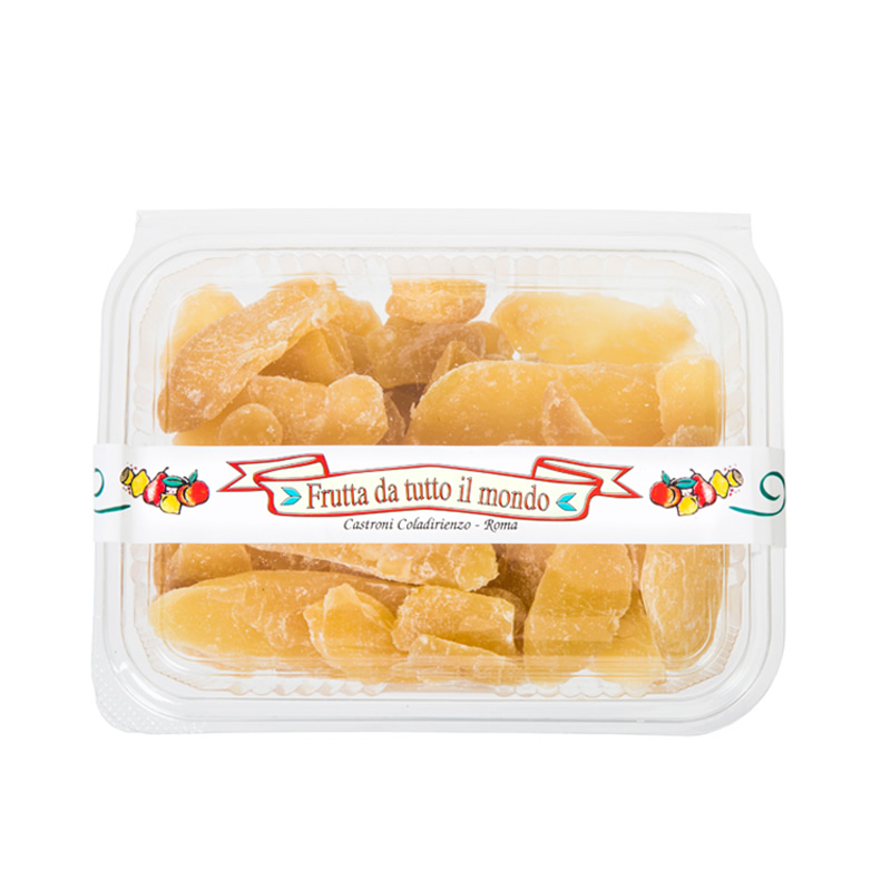 Il processo di disidratazione prevede prima la sbucciatura ed il taglio della radice, dopodiché si procede con la fase di disidratazione che non altera il contenuto vitaminico, poiché non prevede l’uso di calore. Il prodotto disidradato viene infine leggermente spolverato con dello zucchero.